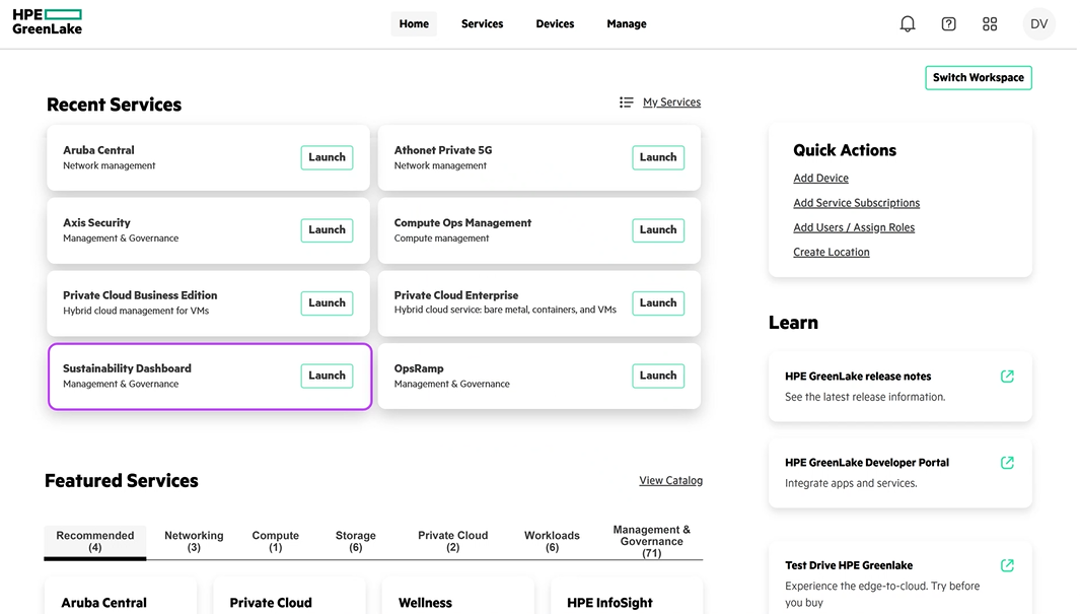 HPE har också byggt upp ”GreenLake Cloud Platform”, en portal som är din väg in till allt om GreenLake. Här finns bla.: